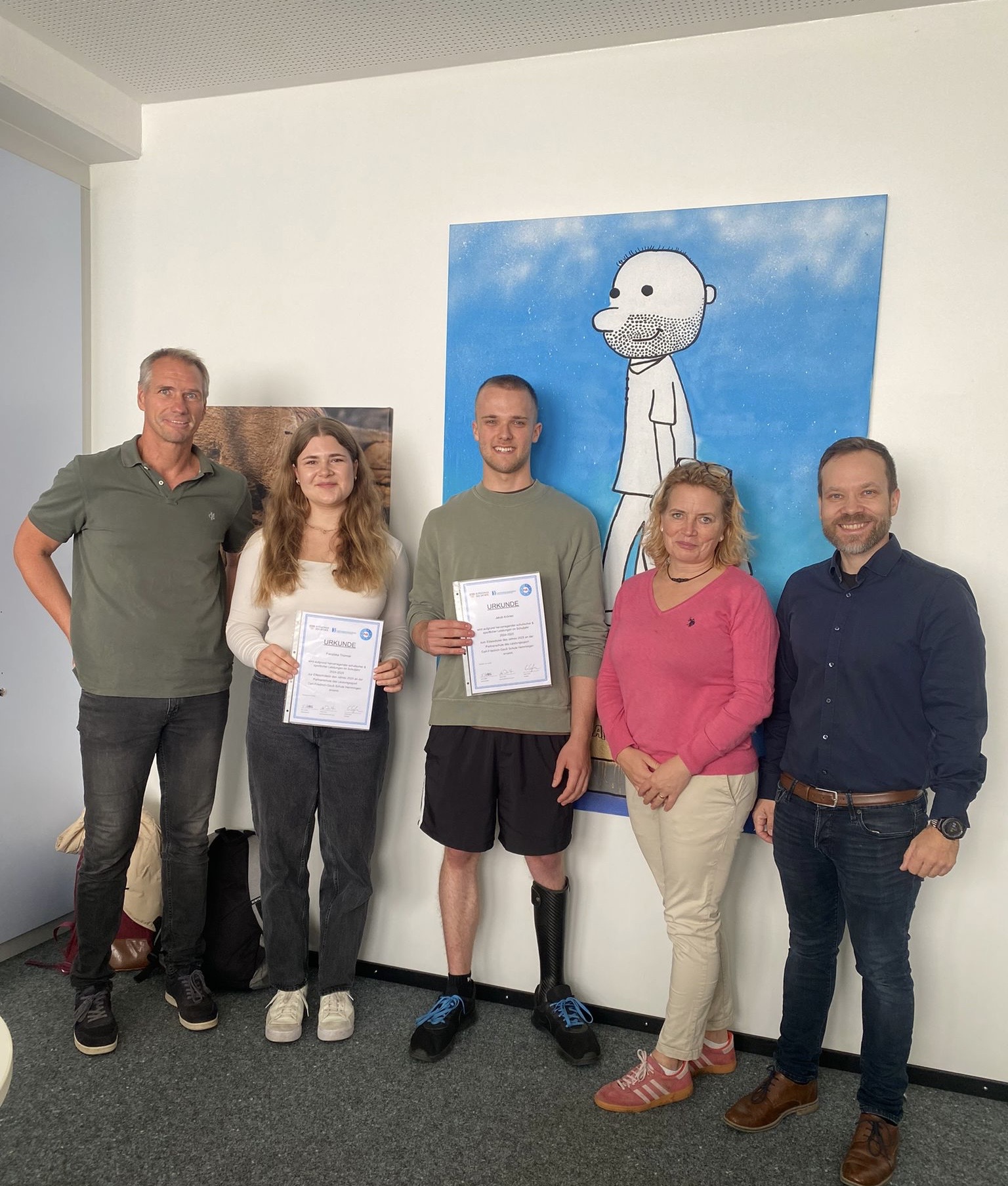 Neben diesen Charaktereigenschaften zeichnen Jakob seine Gelassenheit und Fähigkeit auch besonders arbeitsintensive Phasen erfolgreich zu meistern. Damit fährt er auch unserer Schule extrem gut. Er hat einen „Plan“, den er mit Weitsicht aufstellt. Einen Notendurchschnitt von 1,7 im ersten Streckungsjahr sprechen eine deutliche Sprache;-)